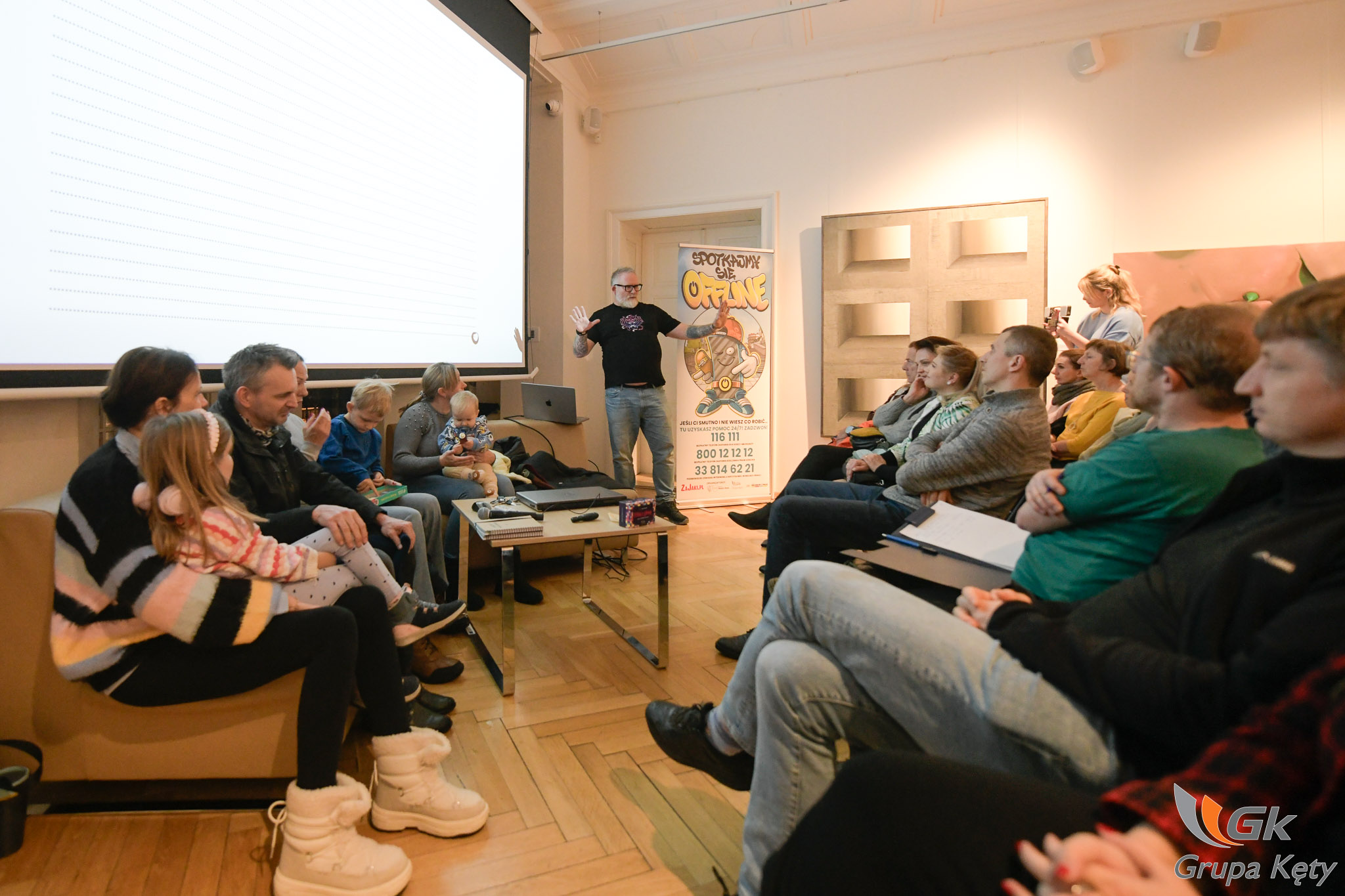 Following the subjects of self-acceptance, peer violence, and relationships, in 2026 there came time for ‘meeting offline’. The symbol of this edition is, somewhat ironically, a telephone – ‘OFFek’. The first event within the ‘Let’s Meet Offline’ edition was a meeting with young people from Bielsko-Biała secondary schools, devoted to digital hygiene.
