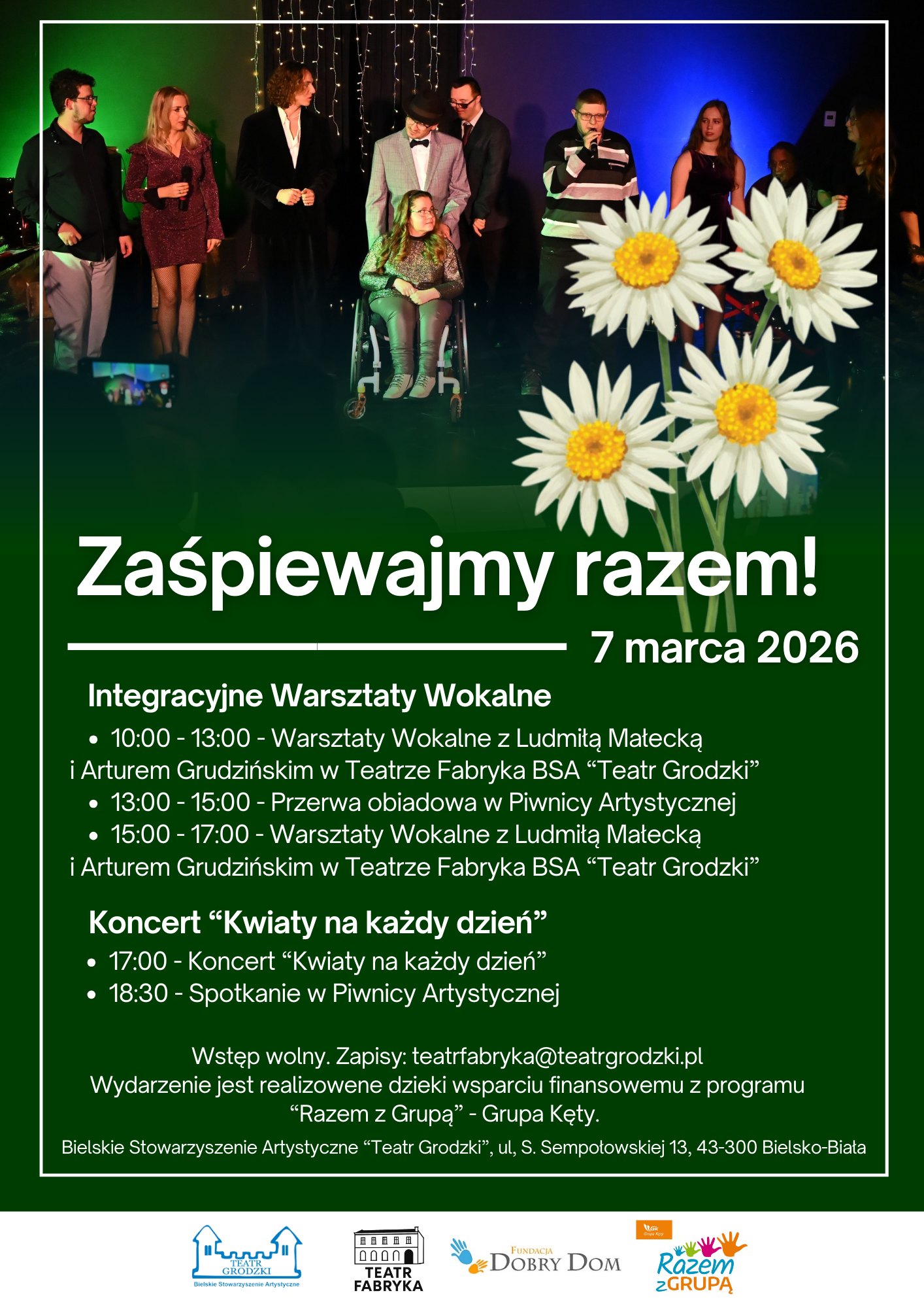 On 7 March, at the ‘Fabryka BSA – Teatr Grodzki’ theatre in Bielsko-Biała there were held free-of-charge singing workshops and the ‘Flowers for Everyday’ concert.