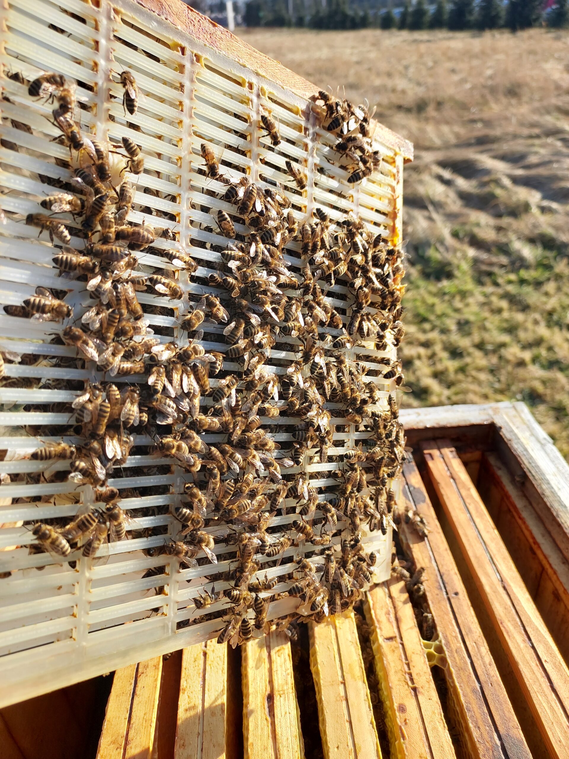 Za mną pierwszy przegląd pasieki. Ogólnie rodziny w bardzo dobrej kondycji po zimowli z jednym wyjątkiem, pierwszy raz nie przezimowała nam jedna rodzina a zaczynamy już 5 sezon. Zdjęcia wykonałem podczas uwalniania matek pszczelich z izolatorów po zimie relacjonuje Pan Wojciech